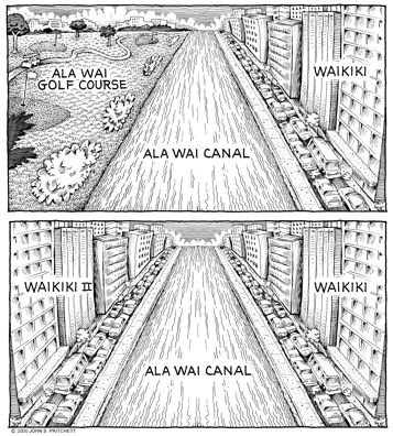 Honolulu Weekly 10-11-00 Plans to develop Ala Wai Golf Course could mean expansion of Waikiki. Next Cartoon | Previous Cartoon | 2000 | Archives | Home | Search