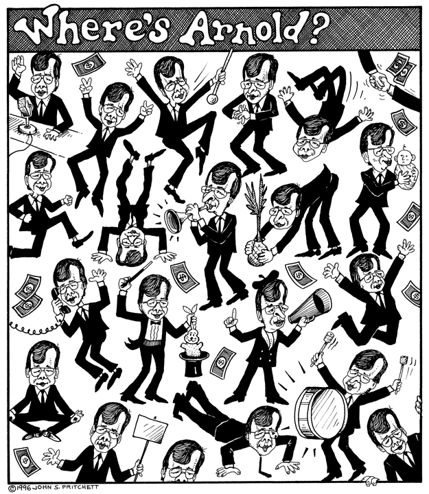 Honolulu Weekly 4-24-96 Incumbent Honolulu Mayor Jeremy Harris is everywhere, but Where's challenger Arnold? Next Cartoon | Previous Cartoon | 1996 | Archives | Home | Search