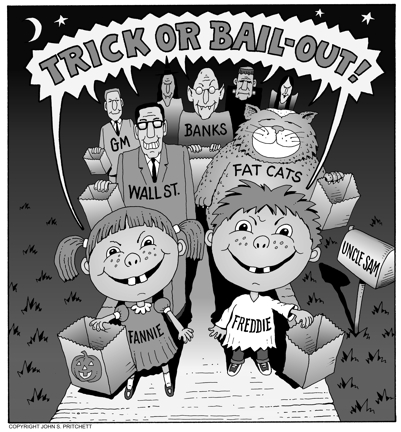 Honolulu Weekly 10-22-08 Halloween 2008 - Trick or Bail-Out | See it in Color Next Cartoon | Previous Cartoon | 2008 | Archives | Home | Search