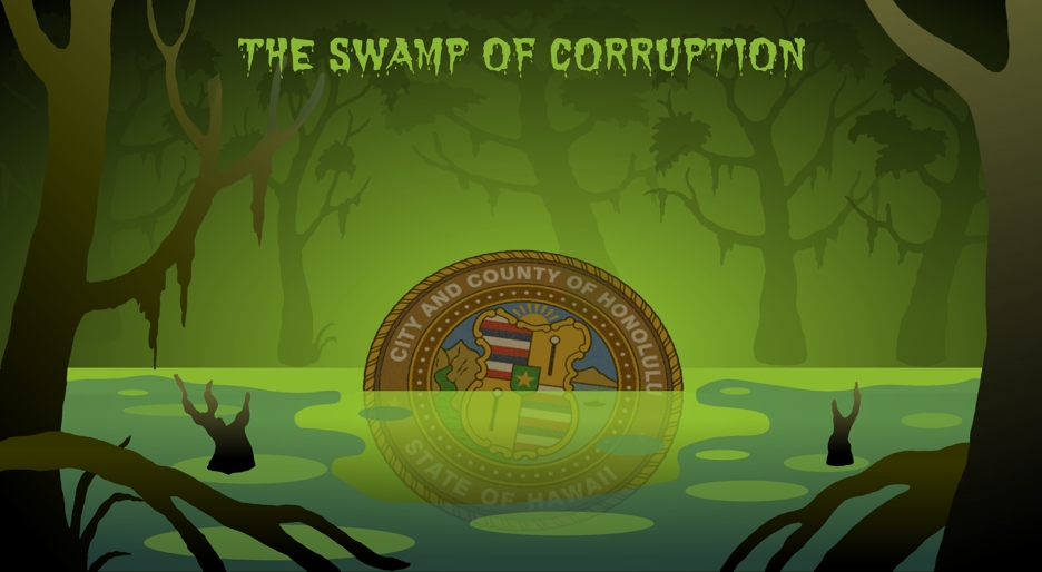 Honolulu city government sinks into swamp of corruption. Pritchett Cartoon for MidWeek January 23, 2019 | To comment, Email Pritchett Next Cartoon | Previous Cartoon | MidWeek Pritchett Cartoon Archive | Home Page