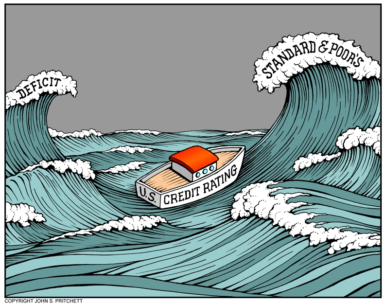 Standard & Poor's downgrades US credit rating. July 2011 For details on reprint usage or to purchase original art, Email Pritchett Business Cartoons | Site Map | Home Page