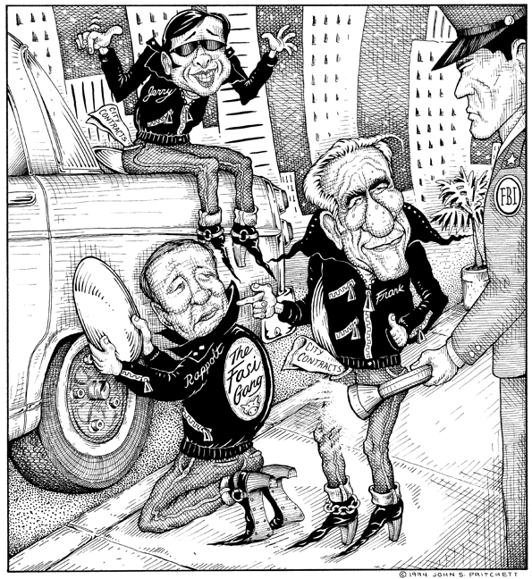 Honolulu Weekly 6-29-94 FBI investigates illegal campaign practices. Only Ken Rappolt gets busted. Next Cartoon | Previous Cartoon | 1994 | Archives | Home | Search