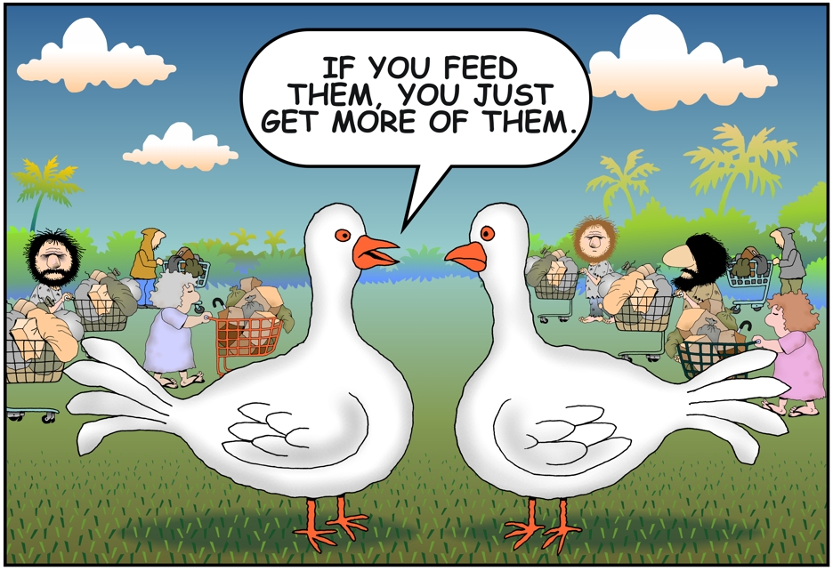 Pigeons discuss the homeless situation. Pritchett Cartoon for MidWeek April 10, 2019 | To comment, Email Pritchett Next Cartoon | Previous Cartoon | MidWeek Pritchett Cartoon Archive | Home Page