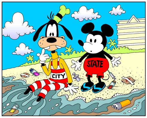 Hawaii Reporter 1-21-11 City, State incompetent, allow medical waste to spoil Disney Aulani resort beach. Next Cartoon | Previous Cartoon | 2010 | 2011 | Home | Search