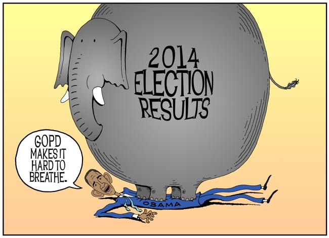 2014 Election Results, GOP Elephant on Obama's Chest
