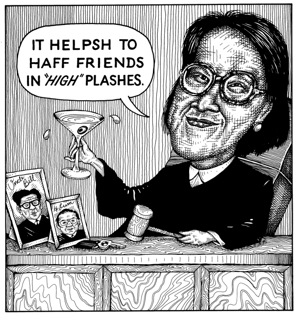 Honolulu Weekly 2-10-93 In spite of DUI, Allene Richardson, niece of William S. Richardson, is appointed District Court judge. Next Cartoon | Previous Cartoon | 1993 | Archives | Home | Search