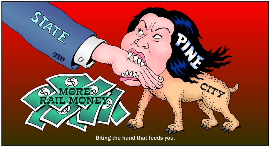 Honolulu City Council member Kymberly Pine bites state even after legislators provide her billions more for rail.
