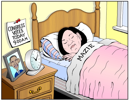 Hawaii Reporter 9-14-12 Lazy Mazie - US Congresswoman, Mazie Hirono sleeps in, misses vote. Next Cartoon | Previous Cartoon | 2010 | 2011 | 2012 | Home | Search