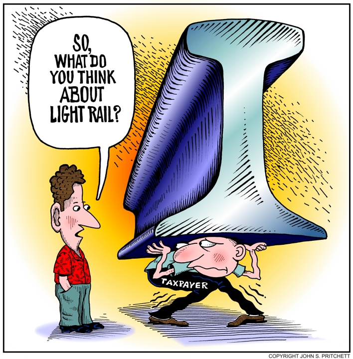 Light rail not so light, a burden to taxpayers. For details on usage Email Pritchett Transportation Cartoons | Site Map | Home Page