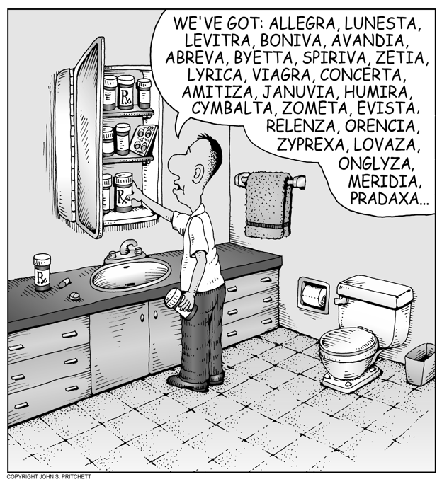Honolulu Weekly 3-28-12 The Medcine Cabinet - All these drugs end with the letter "A" See the updated cartoon Next Cartoon | Previous Cartoon | 2012 | Archives | Home | Search