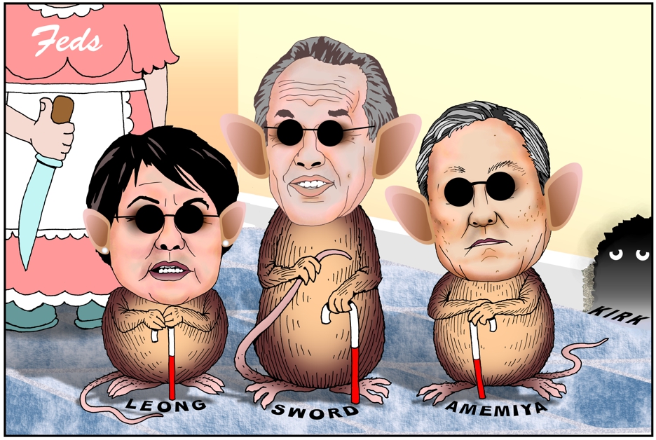 Donna Leong, Max Sword, Roy Amemiya are the Three Blind Mice. See how they run.
