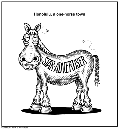 Honolulu Weekly 6-30-10 Honolulu is a one-horse town with daily newspaper monopoly. Next Cartoon | Previous Cartoon | 2010 | Archives | Home | Search