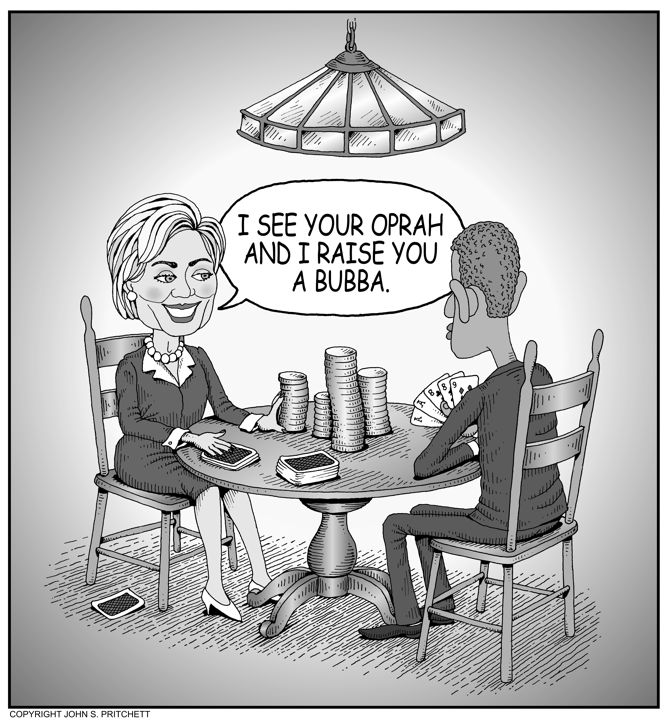 Honolulu Weekly 12-12-07 Hillary Clinton and Barack Obama play poker. Next Cartoon | Previous Cartoon | 2007 | Archives | Home | Search