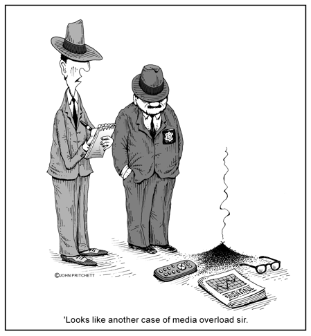 "A victium of news media overload" For details on usage Email Pritchett Media Cartoons | Site Map | Home Page