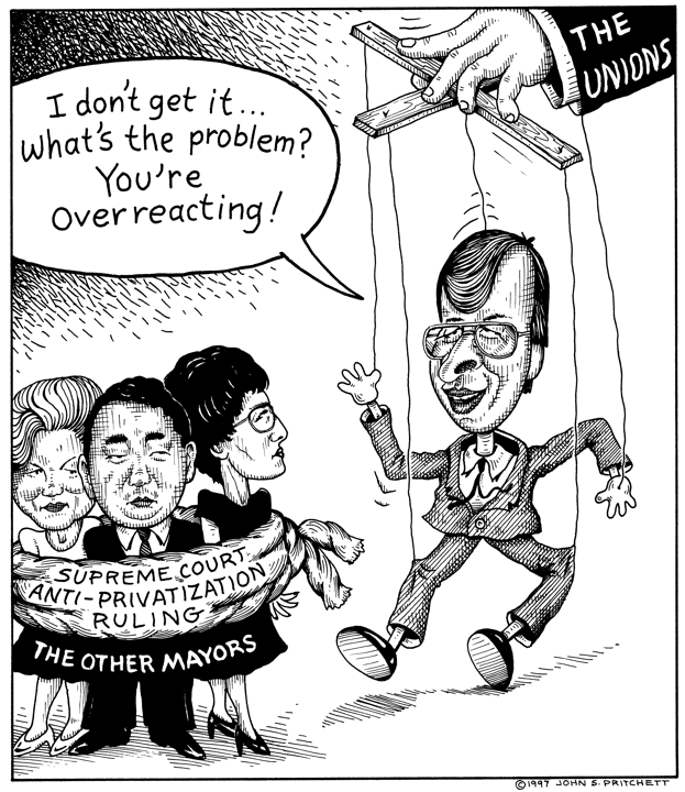 Honolulu Weekly 5-7-97 Honolulu Mayor Jeremy Harris a Puppet of the Unions. Next Cartoon | Previous Cartoon | 1997 | Archives | Home | Search