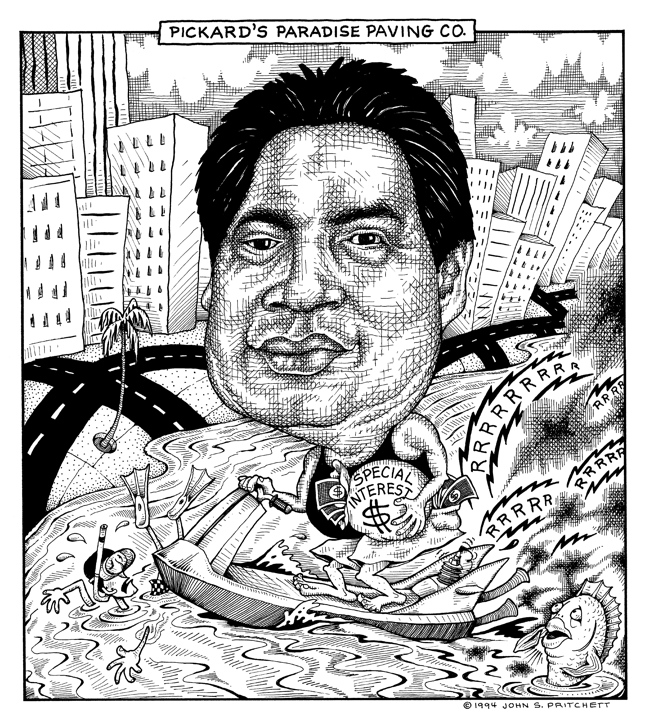 Honolulu Weekly 10-12-94 Developer Joe Pickard challenges incumbent City Councilman Steve Holmes. Next Cartoon | Previous Cartoon | 1994 | Archives | Home | Search