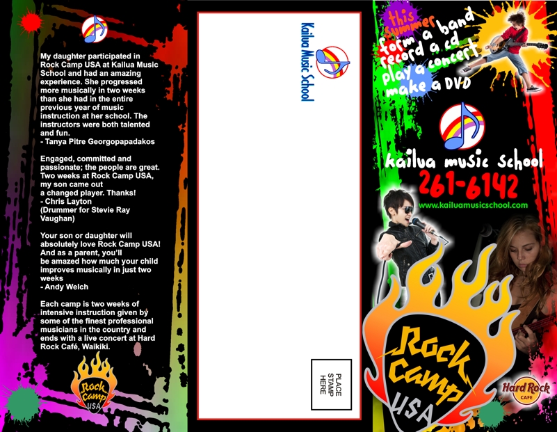 Tri fold brochure design for Kailua Music School Rock Camp USA 2012
