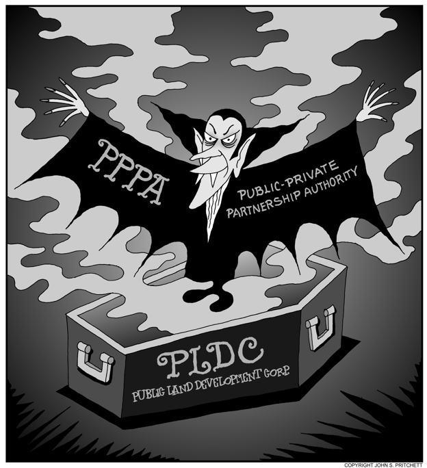 Honolulu Weekly 3-20-13 PLDC rises from the dead as PPPA, legislative shell game. Next Cartoon | Previous Cartoon | 2013 | Archives | Home | Search