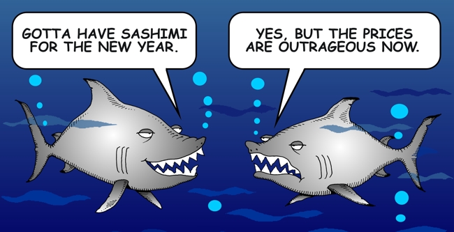 Gotta have sashimi for the New Year. Pritchett Cartoon for MidWeek, December 28, 2016 | To comment, Email Pritchett Next Cartoon | Previous Cartoon | MidWeek Pritchett Cartoon Archive | Home Page | Search