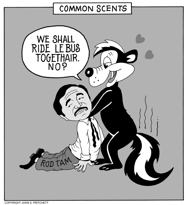 Honolulu Weekly 9-2-09 Honolulu City Councilman Rod Tam proposes ban on stinky bus riders. Next Cartoon | Previous Cartoon | 2009 | Archives | Home | Search
