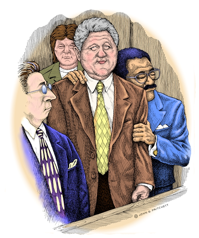Bill Clinton Acquitted! For details on usage or to purchase original artwork: Email Pritchett Clinton Cartoons | Home Page | Site Map | Search