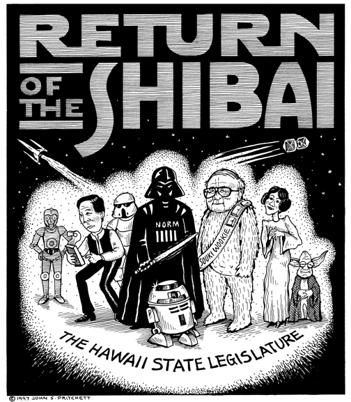 Honolulu Weekly 2-26-97 Return of the Shibai - the Hawaii legislature returns Next Cartoon | Previous Cartoon | 1997 | Archives | Home | Search