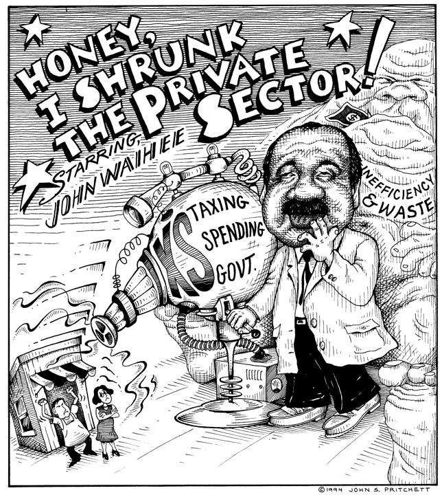 Policies of Hawaii Governor John Waihee results in shrinking the private sector.