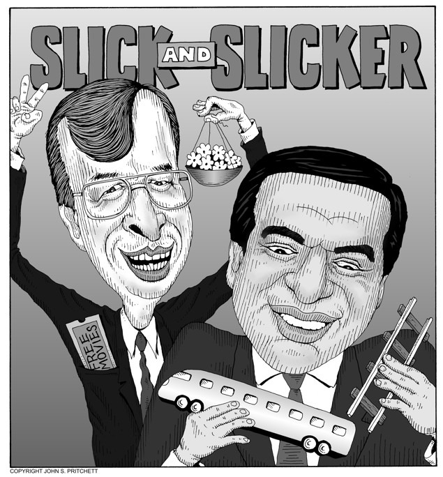 Honolulu Weekly 9-10-08 Honolulu mayors Jeremy Harris and Mufi Hannemann are "Slick and Slicker." Next Cartoon | Previous Cartoon | 2008 | Archives | Home | Search
