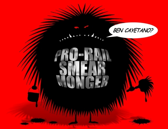 Hawaii Reporter 5-11-12 Pro-rail faction unleashes smear campaign against Ben Cayetano. Next Cartoon | Previous Cartoon | 2010 | 2011 | 2012 | Home | Search