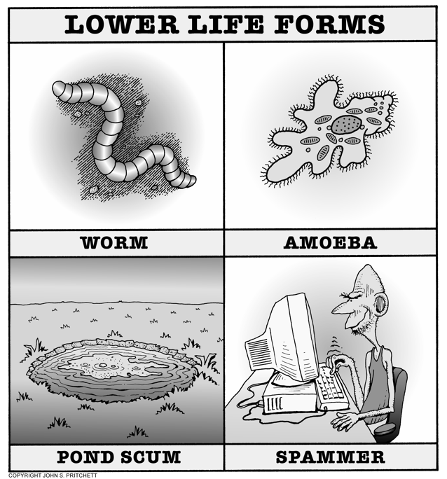 Honolulu Weekly 6-20-07 Lower Life Forms - Spammer is the lowest Next Cartoon | Previous Cartoon | 2007 | Archives | Home | Search