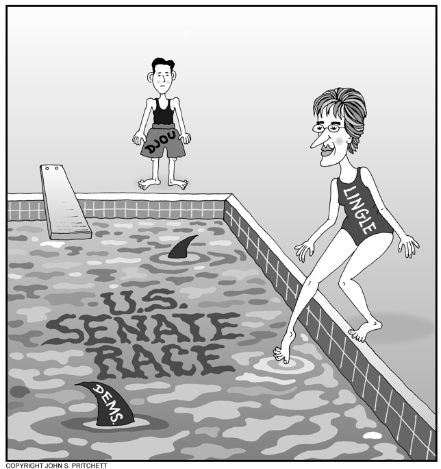 Honolulu Weekly 8-17-11 Linda Lingle testing the water of U.S. senate race. Next Cartoon | Previous Cartoon | 2011 | Archives | Home | Search