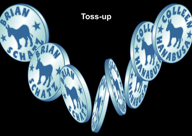 Brian Schatz, Colleen Hanabusa two sides of the same Democratic coin. It's a toss-up.