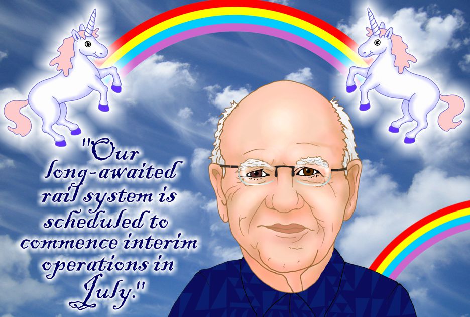 Honolulu Mayor Rick Blangiardi announces interim operations of rail system in July.