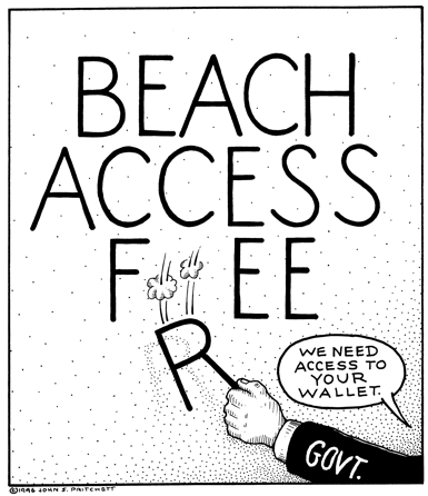 Honolulu Weekly 2-14-96 Government wants to charge a fee for beach access. Next Cartoon | Previous Cartoon | 1996 | Archives | Home | Search