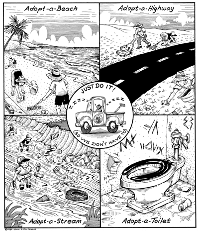 Honolulu Weekly 11-1-95 Honolulu citizens asked to do city maintenance so city crews can sleep. Next Cartoon | Previous Cartoon | 1995 | Archives | Home | Search