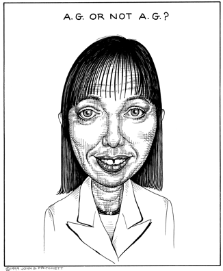 Honolulu Weekly 4-28-99 A.G. Margery Bronster denied a second term, payback for Bishop Estate investigation. Next Cartoon | Previous Cartoon | 1999 | Archives | Home | Search