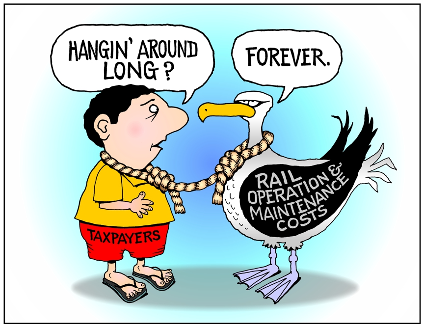 Operation and maintenance cost for Honolulu Rail albatross forever. To comment, Email Pritchett | Rail Cartoons | Home Page