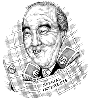 The cartoon above was commissioned by a private, political action group supporting Republican Roger Ancheta. In 1998, Ancheta ran against Democrat Randy Iwase for the state Senate, 18th district. The cartoon, by John Pritchett, was featured in a mailer designed to bring public awareness to the fact that when Randy Iwase was Chairman of the Senate Land and Water Use Committee, his downtown law firm received a million dollars from the Bishop Estate for land and water use legal services. A conflict of intrest? (Honolulu Advertiser Sept. 29, 1998.) Ancheta lost the race to Iwase. But, even though Iwase had beat Ancheta, Iwase still filed a complaint with the state Campaign Spending Commission about the flier and cartoon. The Campaign Spending Commission promptly ruled in Iwase's favor, issuing a letter of censure to be placed in Ancheta's permanent file. Ancheta took the Campaign Spending Commission to federal court, and on January 3, 2001, Federal Judge Helen Gillmor ruled in Ancheta's favor saying: "a state's attempt to exclude disfavored speech is precisely what the First Amendment seeks to prevent." Judge Gillmor ruled that Hawaii's code of conduct for politicians is unconstitutional and ordered the state to remove its censure against Ancheta. The state now faces possible legal action seeking monetary compensation for damage done to Ancheta's political career and reputation. |
