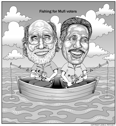 Honolulu Weekly 10-13-10 Neil Abercrombie and Duke Aiona go fishing for Mufi voters. Next Cartoon | Previous Cartoon | 2010 | Archives | Home | Search