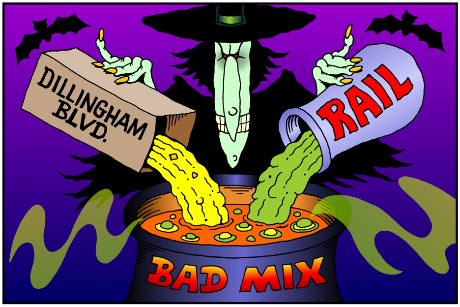 The Honolulu rail coming to Dillingham Blvd. is a nightmare! Pritchett Cartoon for MidWeek September 18, 2019 | To comment, Email Pritchett Next Cartoon | Previous Cartoon | MidWeek Pritchett Cartoon Archive | Home Page