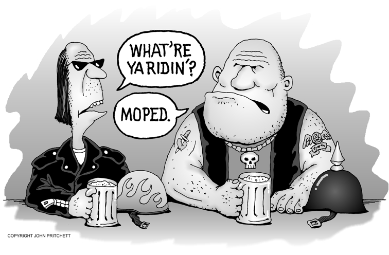 Bikers at the Bar For details on usage or to purchase original artwork Email Pritchett Crazy Cartoons | Site Map | Home Page