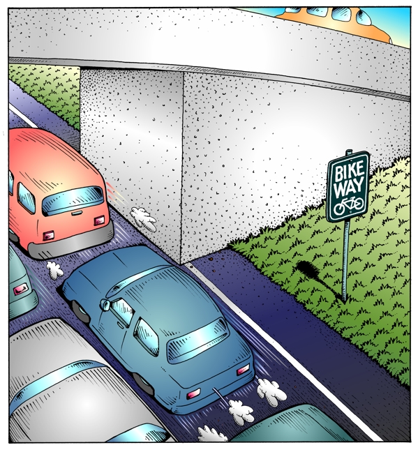 Bikeway to nowhere - bike routes end abruptly For details on usage Email Pritchett Transportation Cartoons | Site Map | Home Page
