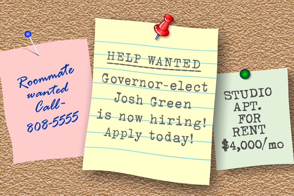 Hawaii Governor-Elect Josh Green is hiring . Pritchett Cartoon for Honolulu Civil Beat, November 27, 2022 | To comment, Email Pritchett Next Cartoon | Previous Cartoon | Civil Beat Pritchett Cartoon Archives | Home Page