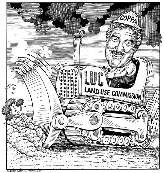 Honolulu Weekly 3-2-00 Carpenter's Union lobbyist Bruce Coppa appointed to Land Use Commission Next Cartoon | Previous Cartoon | 2000 | Archives | Home | Search