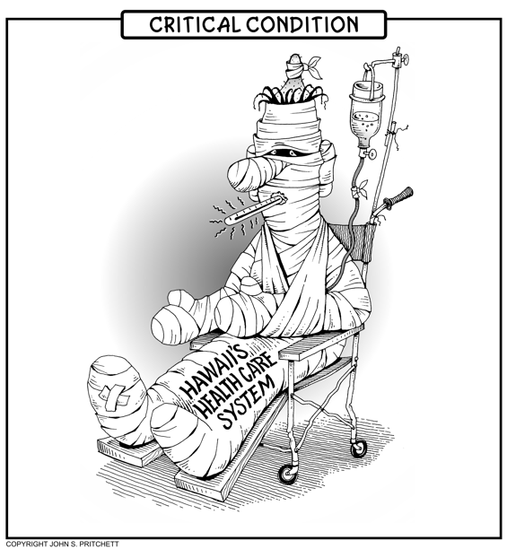 Honolulu Weekly 1-31-07 Hawaii's Health Care System in Critical Condition. Next Cartoon | Previous Cartoon | 2007 | Archives | Home | Search