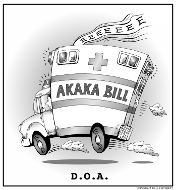 Honolulu Weekly 8-31-05 Akaka Bill rushed to U.S. Senate in desperation, but is it... D.O.A.? Next Cartoon | Previous Cartoon | 2005 | Archives | Home | Search