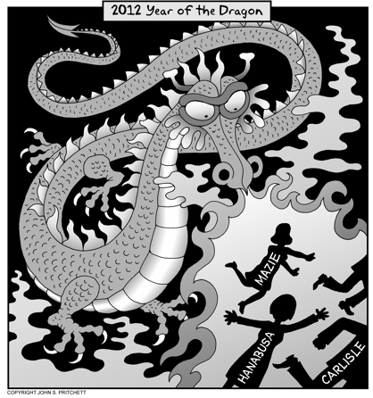 Honolulu Weekly 12-28-11 Hawaii incumbent politicians feel the heat in 2012 the year of the dragon. Next Cartoon | Previous Cartoon | 2011 | Archives | Home | Search
