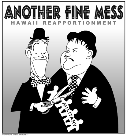 Honolulu Weekly 5-23-12 Hawaii reapportionment excluding military is another fine mess. Next Cartoon | Previous Cartoon | 2012 | Archives | Home | Search
