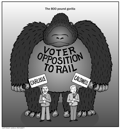 Honolulu Weekly 8-1-12 Voter opposition to rail is the 800 pound gorilla in Honolulu mayoral race. Next Cartoon | Previous Cartoon | 2012 | Archives | Home | Search