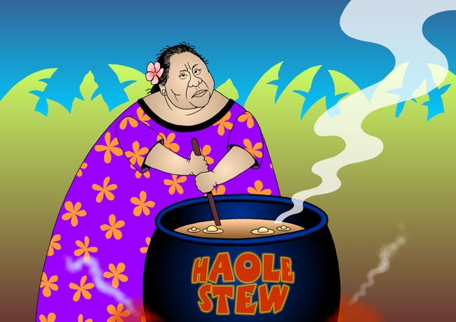 State Representative Faye Hanohano stirs a pot of Haole Stew.